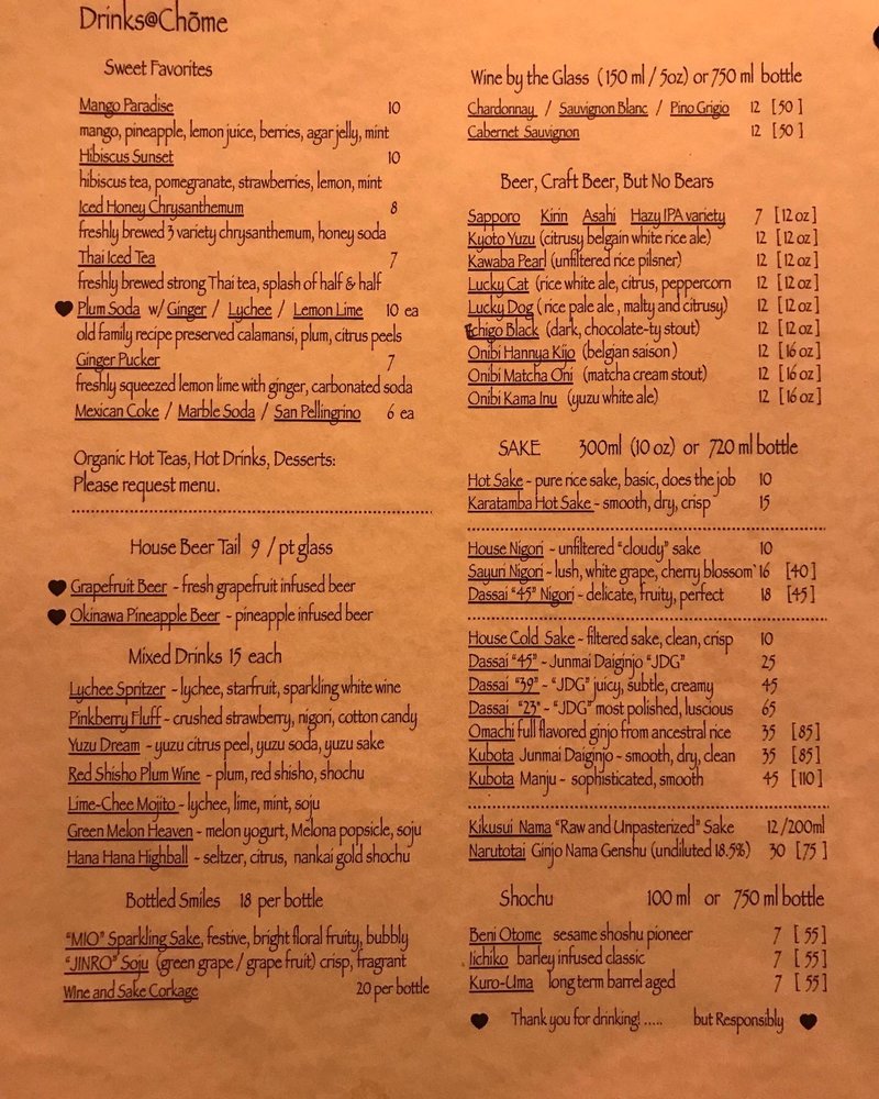 Whether you're stopping by for dinner, a late-night ramen fix, or happy hour specials, Chome promises a memorable experience imbued with warmth and excellent service. Don’t miss out on this fusion of tradition and innovation!