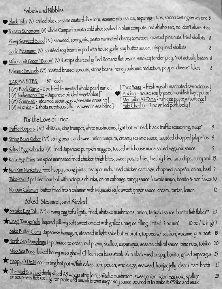 Bluefin sashimi, fresh mango, seaweed, house poke dressing, tobiko, ponzu, fried shallots, sesame seeds.